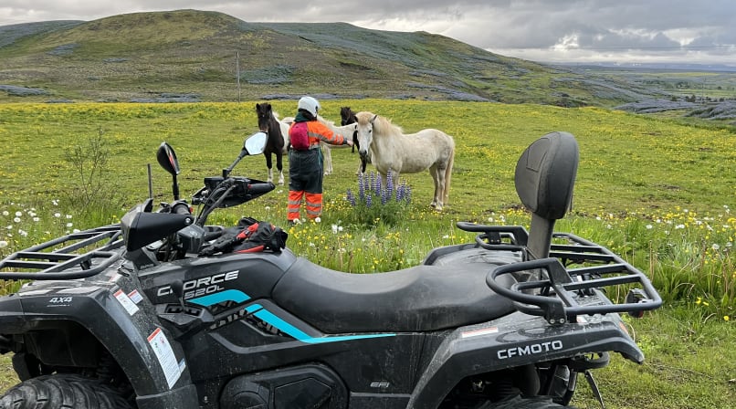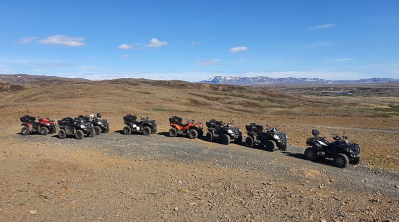 In the "ATV Reykjavik Adventure" tour we take you into the wilderness of Reykjavik and up to the top of the Reykjavik hills where we can enjoy a magnificent view over the Capital and other towns close to Reykjavik. From there in a clear weather day you can also see over to the rift between the Continents plates. Maybe we also will see some Icelandic horses close to the track. Depending on the conditions, we stop at several different places to take pictures and learn a little about the Icelandic nature. Riding time around 2 hours and about 3 hours with pickup and drop off. Maximum bookable online for 8 people or 20 people by request.