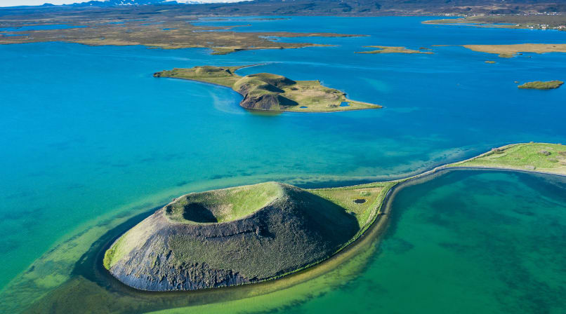 Next, visit Skútustaðagígar, a collection of pseudocraters formed by volcanic activity. Take a walk along the rim of these unique formations and enjoy the panoramic views of the surrounding area.