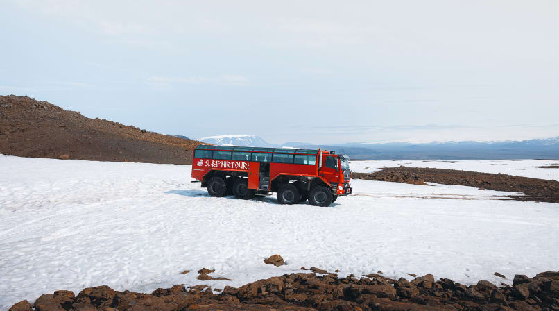 Embark on a once-in-a-lifetime adventure aboard our Monster Sleipnir Trucks, ensuring comfort and safety as we journey to the breathtaking Langjökull, Iceland's second-largest glacier.