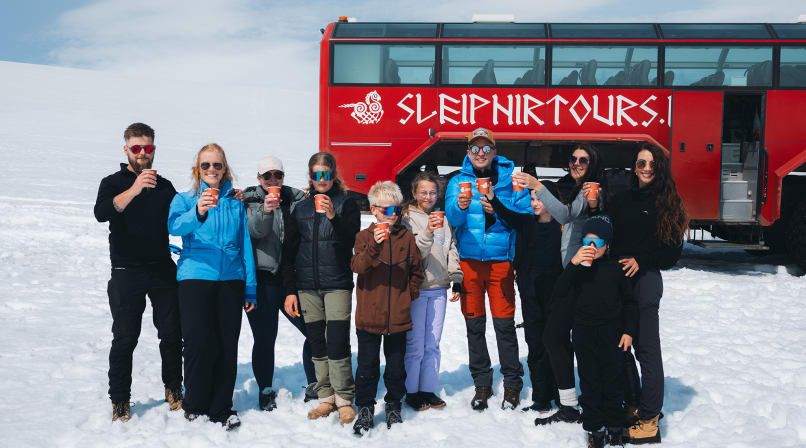 Even when it rains, the glacier and Highlands take on a dramatic beauty that’s well worth the journey. You’ll stay warm and dry inside our comfortable Sleipnir Truck — but you're free to step outside and explore for as long as you like! We serve the hot cocoa then inside! Having said that, in early autumn (Sep & Oct) the weather might be more challenging, and there are days we need to consider to cancel the tour due to weather.
