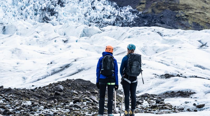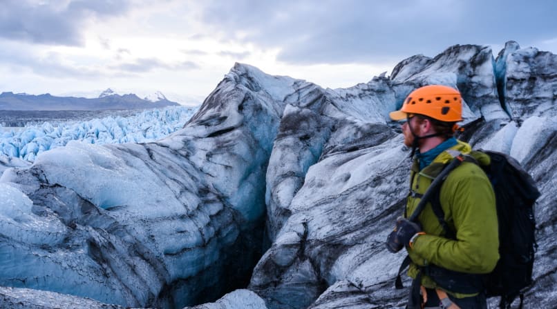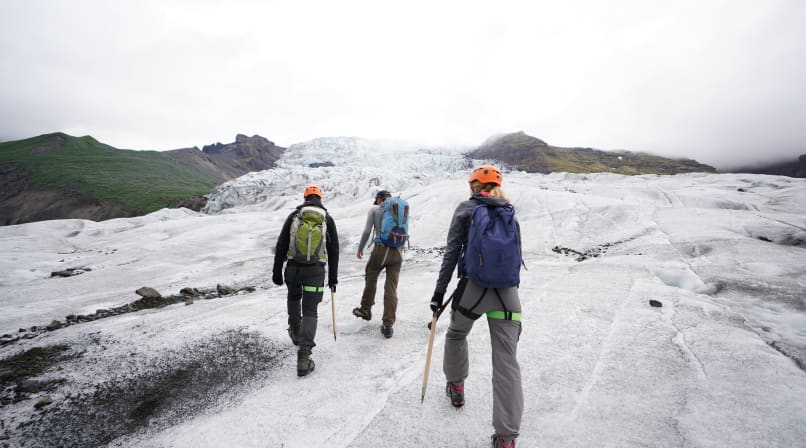 Once we reach the edge of the glacier we put on our crampons, and armed with an ice axe, we venture onto the ice to explore the fascinating ice features such as moulins, crevasses, moraines and dirt cones. Your guide will tell you about the local Öræfi region, home to the highest peak of Iceland and several volcanoes.
