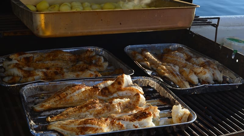 We grill your catch on-board & serve with potatoes and cold garlic sauce!